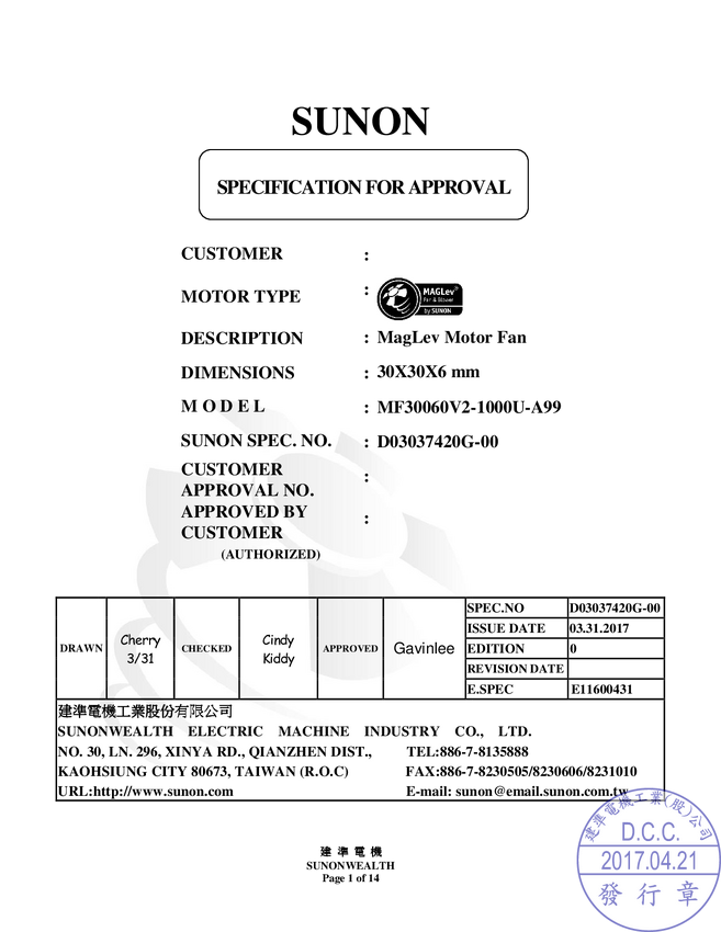 Wentylator osiowy Sunon MF30100V3-1000U-A99, 5 V/DC, 4.25 m³/h, (D x S x W) 30 x 30 x 10 mm