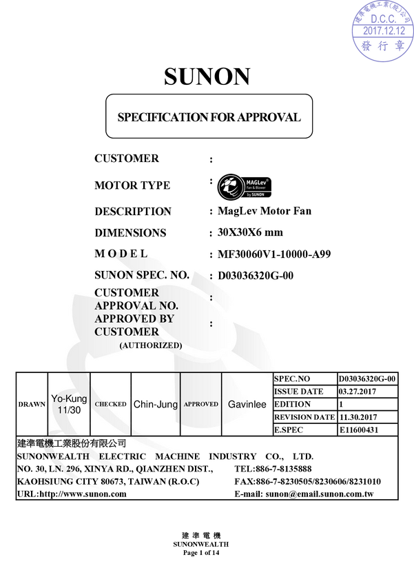 Wentylator osiowy Sunon MF30151V1-1000U-A99, 12 V/DC, 10.2 m³/h, (D x S x W) 30 x 30 x 15 mm