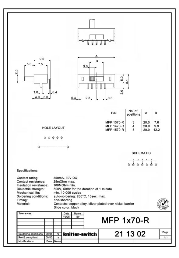 Switch Slide Side Slide 0.35A 30VDC 10000Cycle PC Pins Bracket Mount/Through Hole