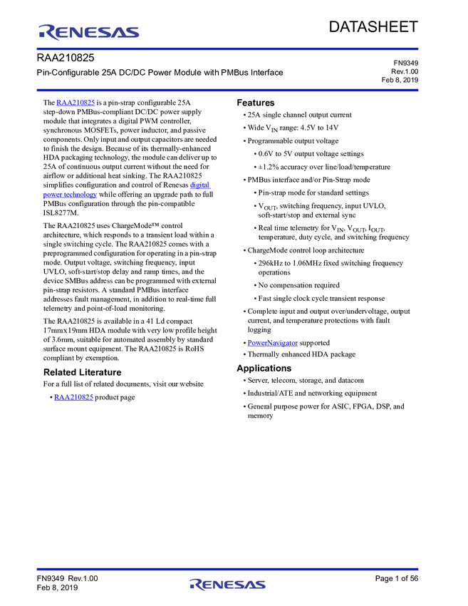 Pin-Configurable 25A DC/DC Power Module with PMBus Interface