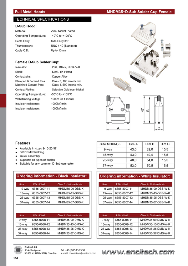 encitech MHDM35-15-DMS-W-K 6355-8008-12 Zestaw listew żeńskich D-Sub 35 ° Ilość styków: 15 kielich lutowniczy 1 szt.