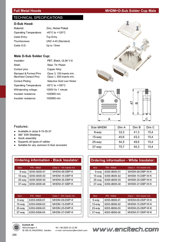 encitech MHDM-09-DMP-W-K 6355-8006-01 Zestaw listew męskich D-Sub 180 ° Ilość styków: 9 kielich lutowniczy 1 szt.