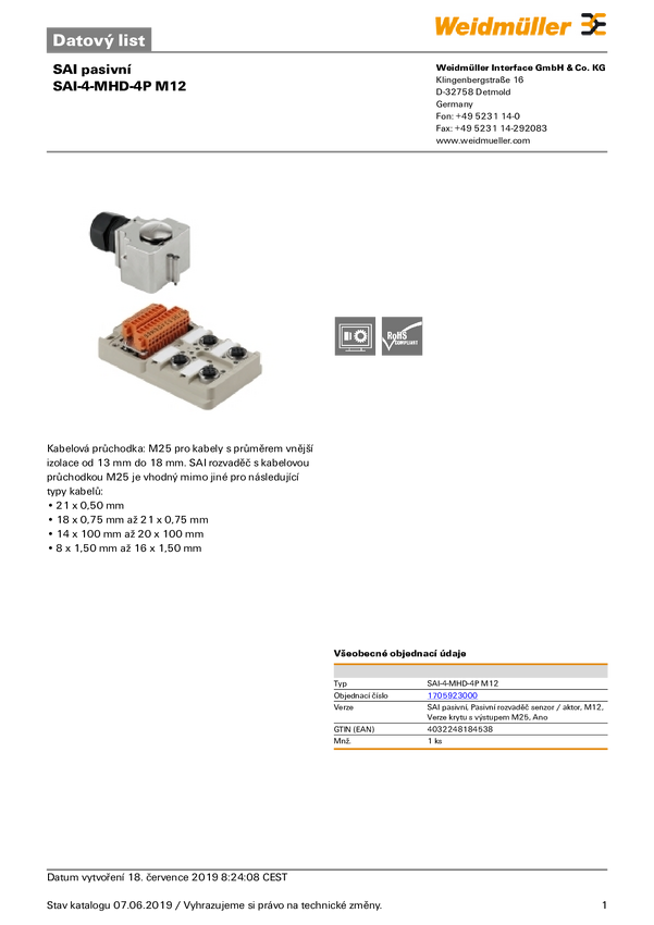 Rozdzielacz czujnik / element wykonawczy, pasywny Weidmüller SAI-4-MHD-4P M12 1705923000 1 szt.