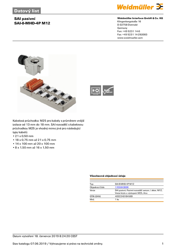 Rozdzielacz czujnik / element wykonawczy, pasywny Weidmüller SAI-8-MHD-4P M12 1705943000 1 szt.
