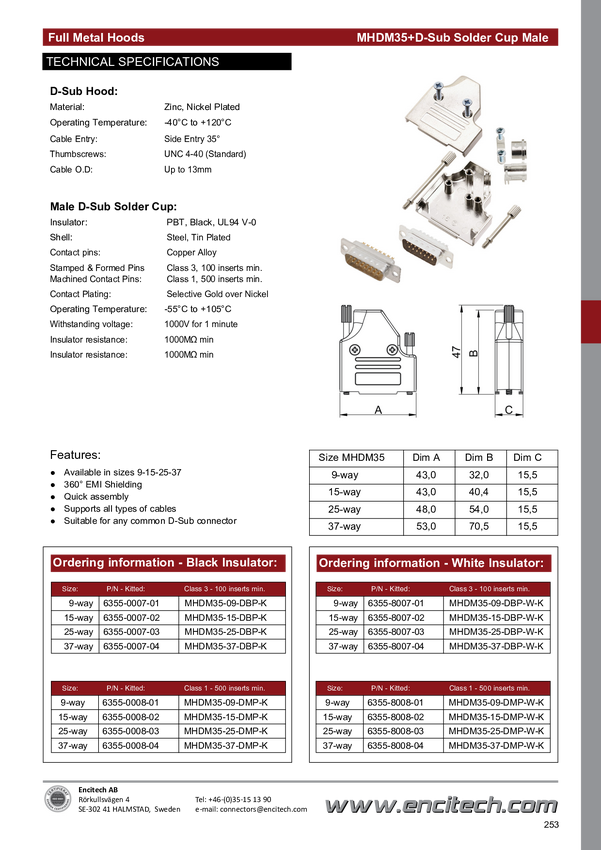 encitech MHDM35-15-DBP-W-K 6355-8007-02 Zestaw listew męskich D-Sub 35 ° Ilość styków: 15 kielich lutowniczy 1 szt.
