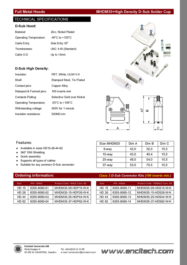 encitech 6355-8060-02 Zestaw listew męskich D-Sub MHDM35-15-HDP26-W-K, rzędy: 3, styki: 26, 35 °, 1 szt.