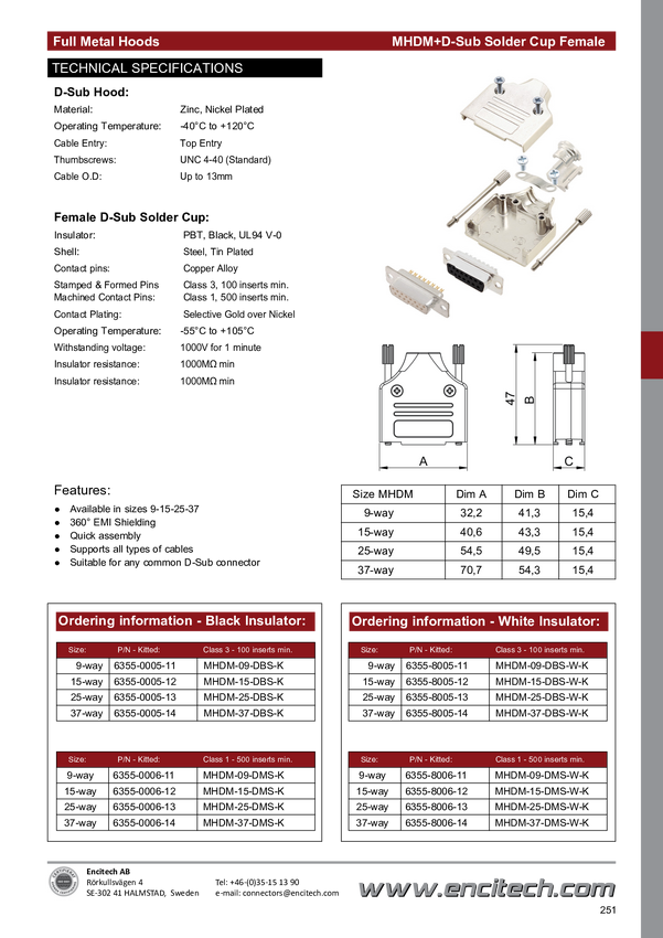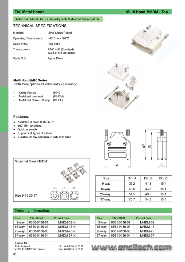 encitech 6560-0136-03 Obudowa złącza D-SUB MHDM25-K, metal, 180 °, 1 szt.