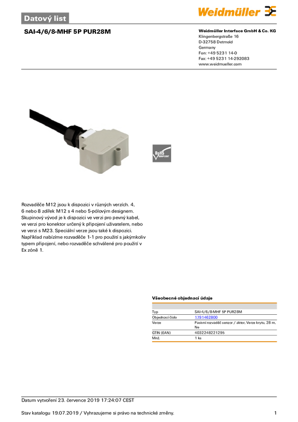 Rozdzielacz czujnik / element wykonawczy, pasywny Weidmüller SAI-4/6/8-MHF 5P PUR25M 1791462500 1 szt.