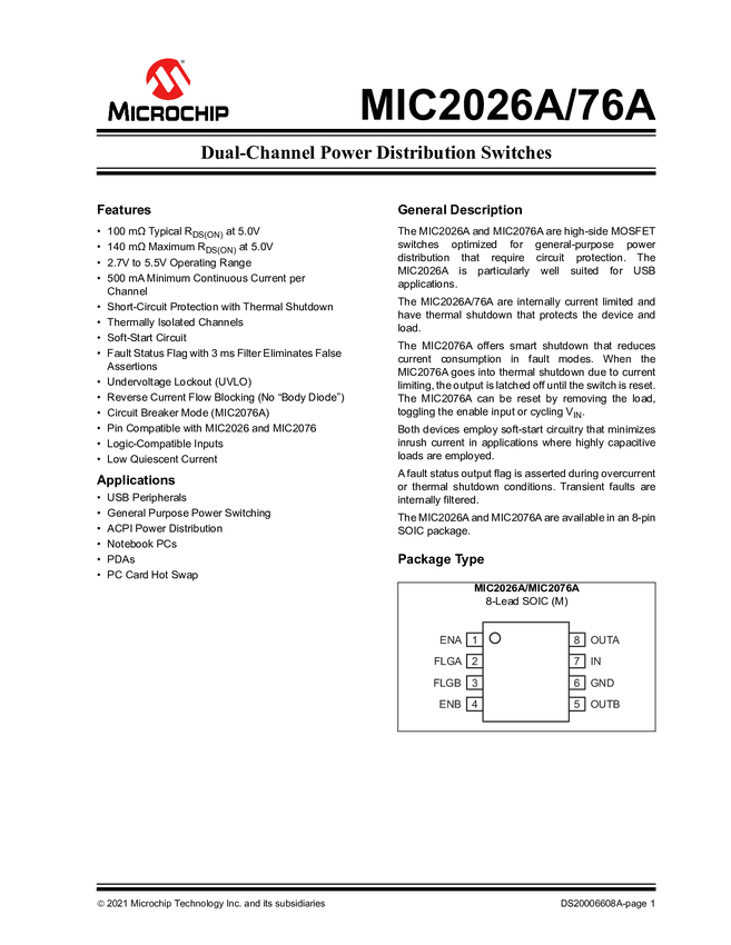 MIC2026/2076 - Dual-Channel Power Distribution Switch (11/05/2015)