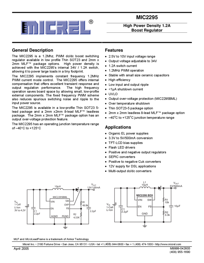 MIC2295 - High Power Density 1.2A Boost Regulator (11/05/2015)