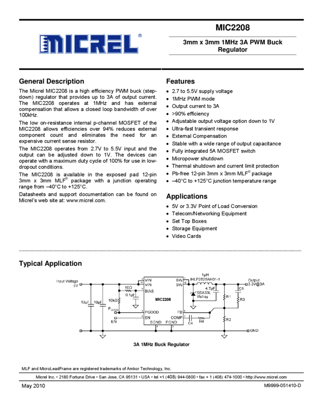 MIC2208 - 3mm x 3mm 1MHz 3A PWM Buck Regulator (11/05/2015)