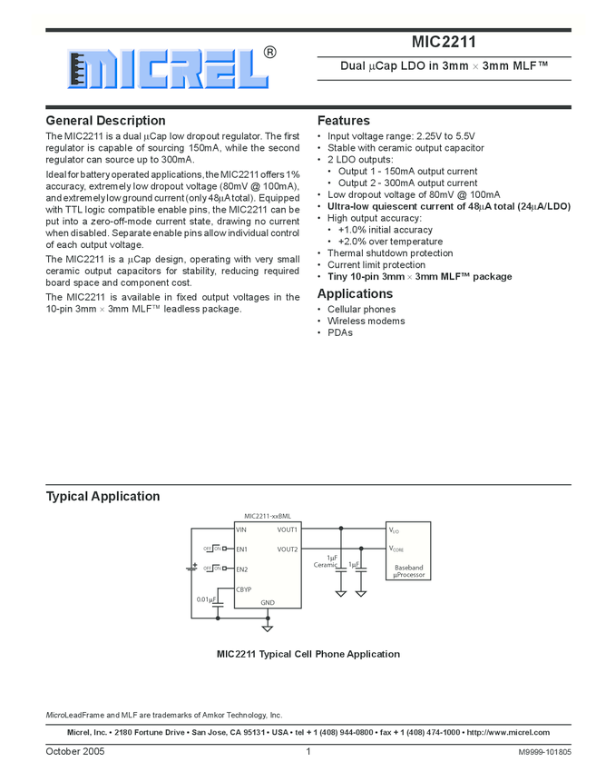 MIC2211 - Dual µCap LDO in 3mm x 3mm MLF? (11/05/2015)