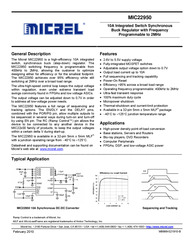MIC22950 - 10A Integrated Switch Synch Buck Reg with Freq Programmable to 2MHz (11/05/2015)