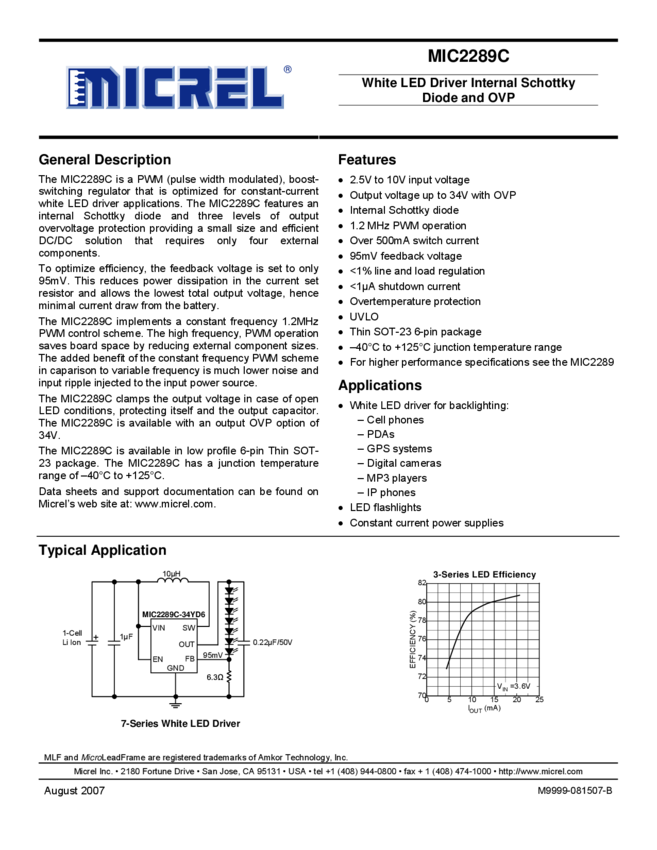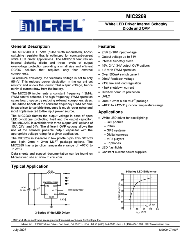 MIC2289 - White LED Driver Internal Schottky Diode and OVP (11/05/2015)