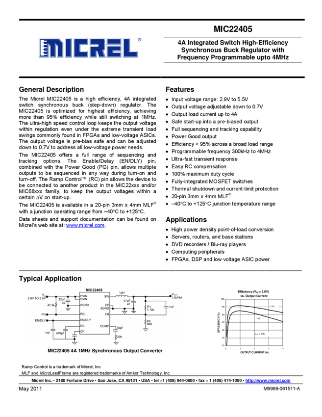 MIC22405 - 4A Integrated Switch High-Eff Synch Buck Regulator with Freq Prog (11/05/2015)