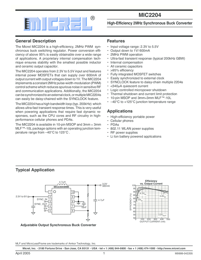 MIC2204 - High-Efficiency 2MHz Synchronous Buck Converter (11/05/2015)