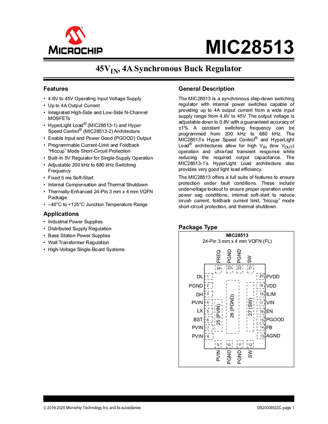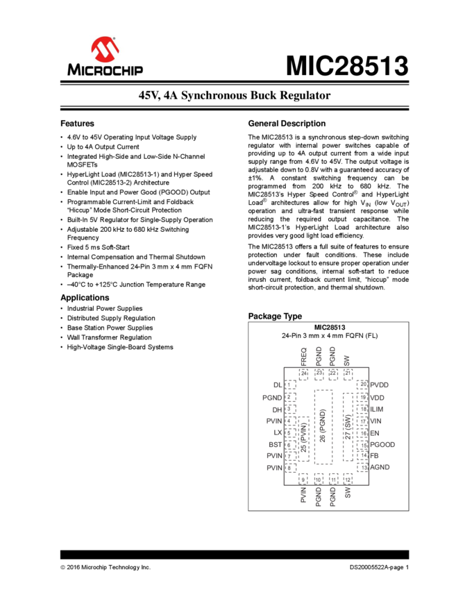 MIC28513 - 45V 4A Synchronous Buck Regulator (11/05/2015)