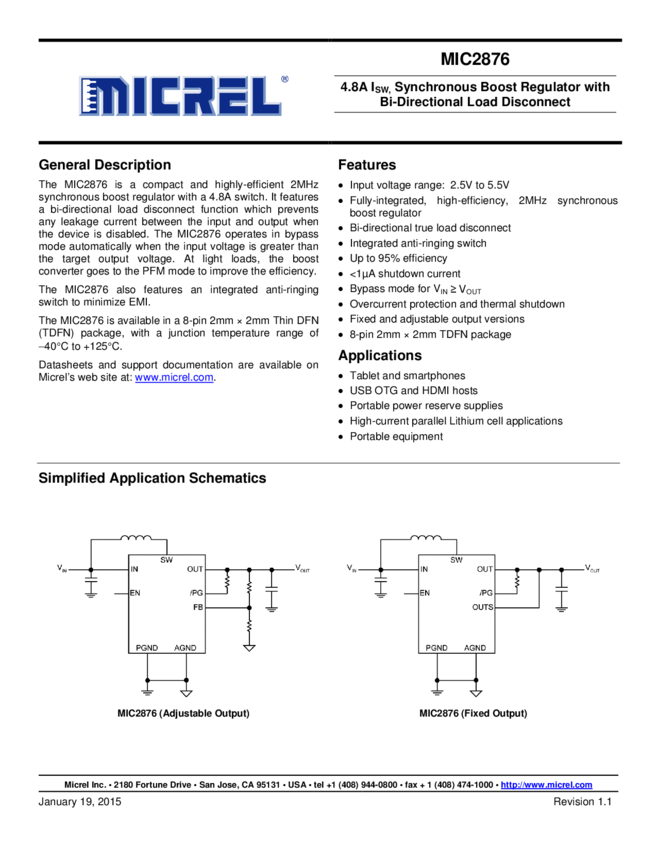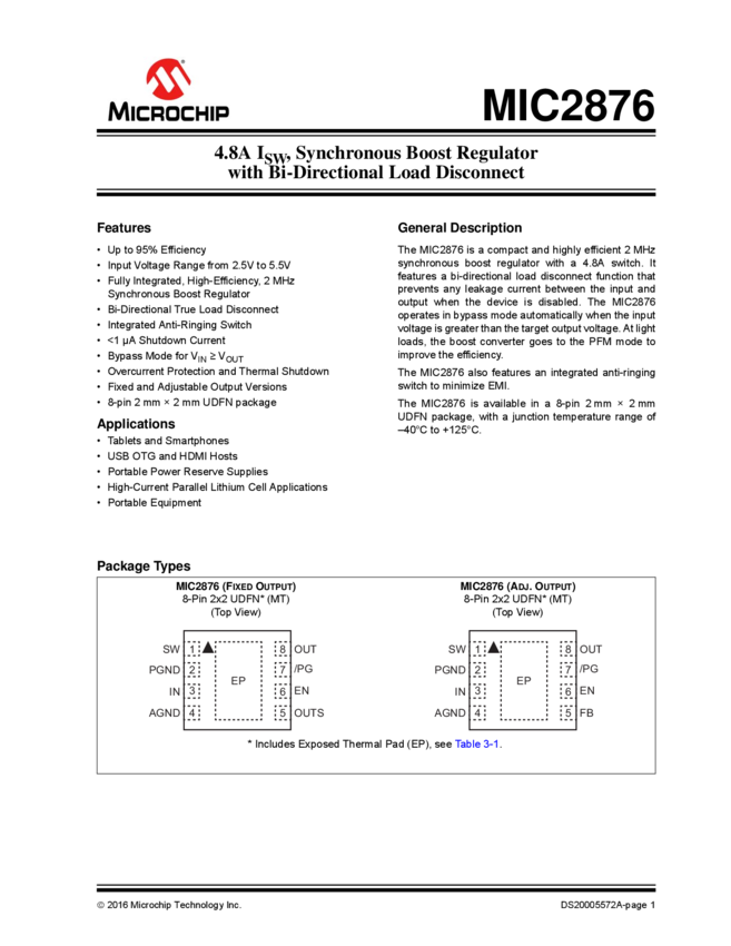 MIC2876 - 4.8A ISW, Synchronous Boost Regulator with Bi-Directional Load Discon. (11/05/2015)