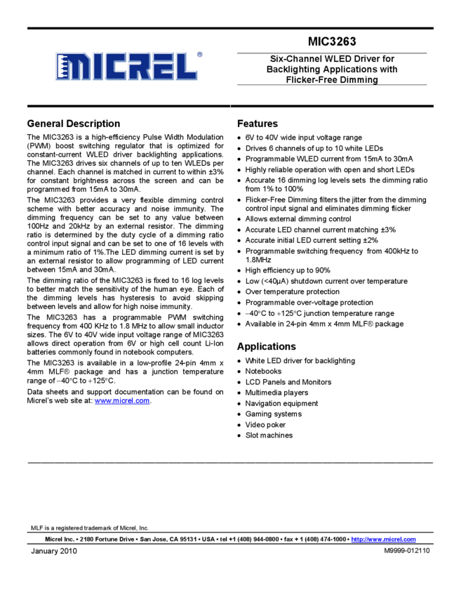 MIC3263 - Six-Channel WLED Driver for Backlighting Applications with Flicker (11/09/2015)