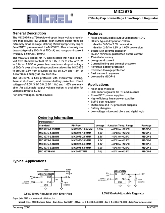 MIC3975 Data Sheet (11/05/2015)