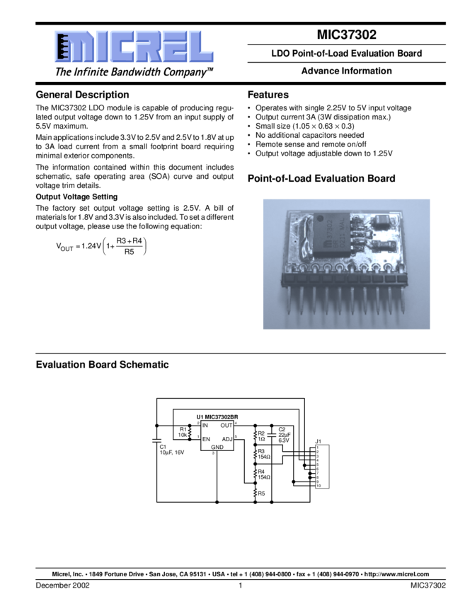 MIC37302 Evaluation Board