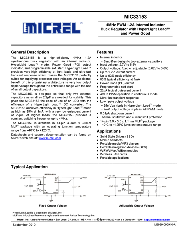MIC33153 - 4MHz PWM 1.2A Internal Inductor Buck Regulator with HyperLight Load ?