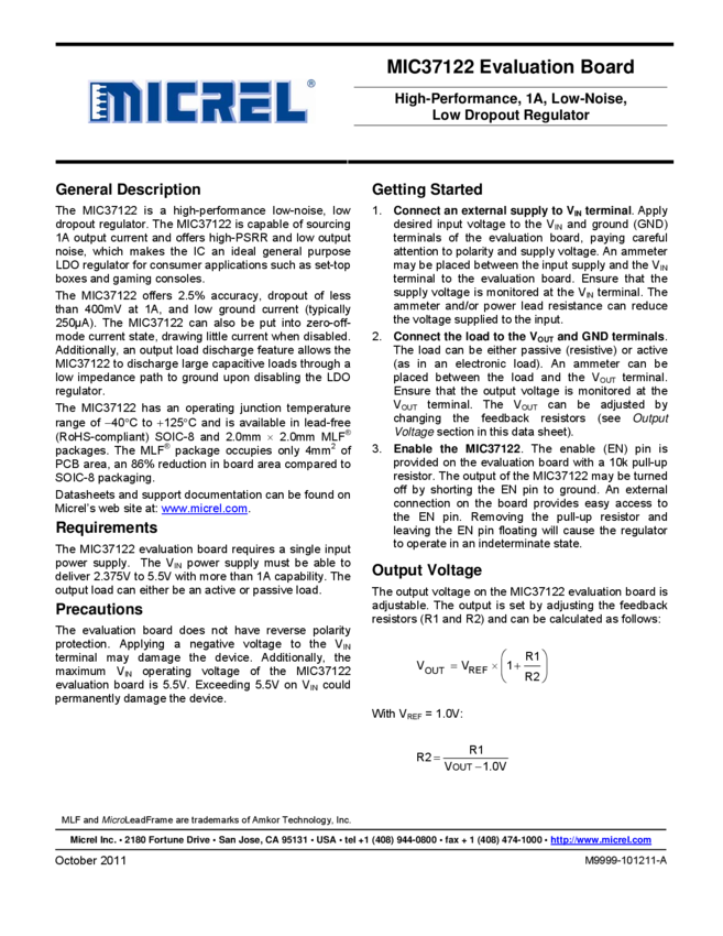 MIC37122 Evaluation Board