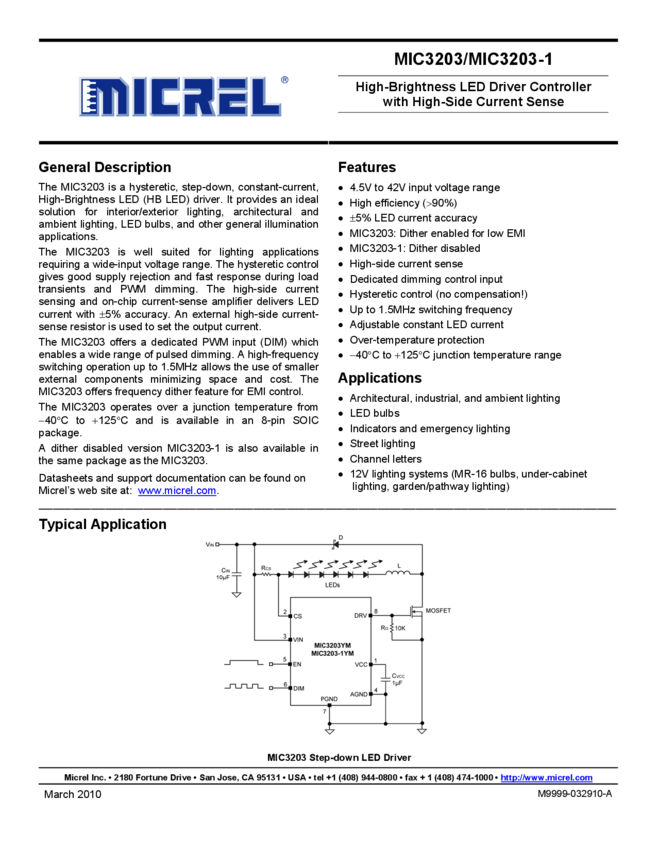 MIC3203/MIC3203-1 - High-Brightness LED Driver Controller (11/09/2015)