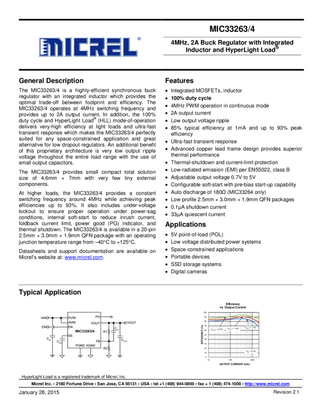 MIC33263/4-4MHz, 2A Buck Regulator with Integrated Inductor and HyperLight Load®