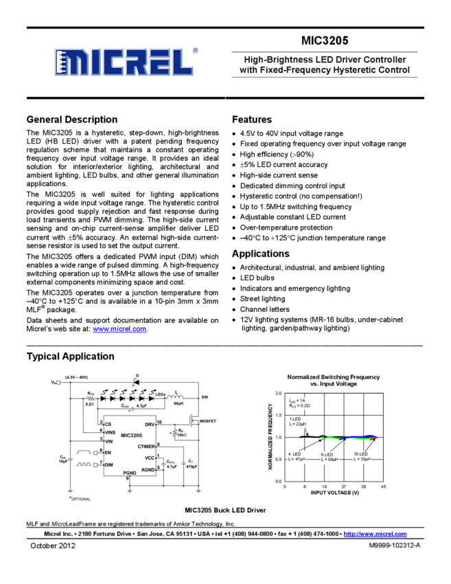 MIC3205 - High-Brightness LED Driver Controller (11/09/2015)