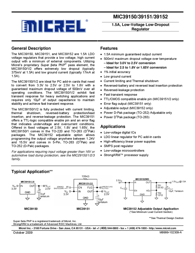 MIC39150/39151/39152 Data Sheet (11/05/2015)