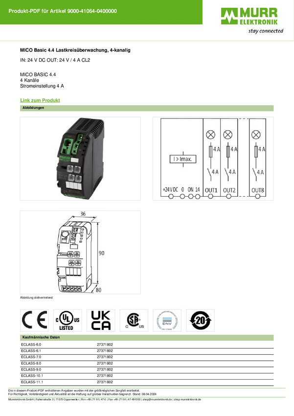 Kontroler obciążenia 18 - 30 V/DC Murrelektronik MICO Basic 4.4 1 szt.
