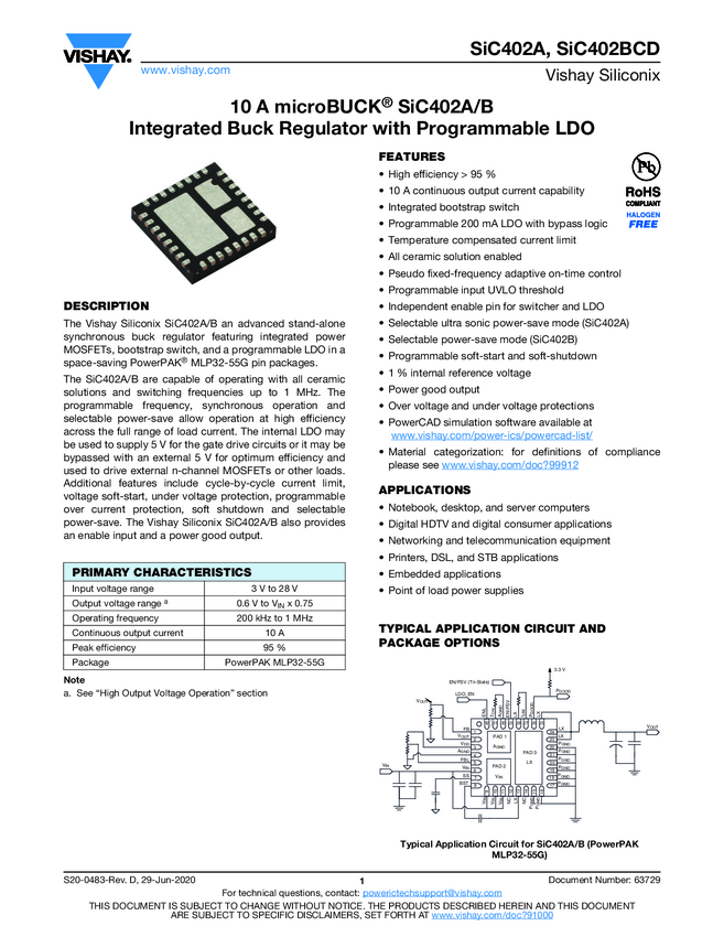 10 A microBUCK® SiC402A/B Integrated Buck Regulator with Programmable LDO