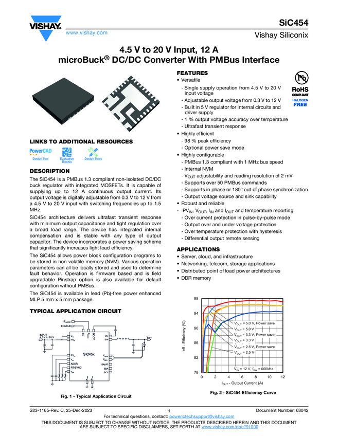 4.5 V to 20 V Input, 12 A microBuck® DC/DC Converter With PMBus Interface
