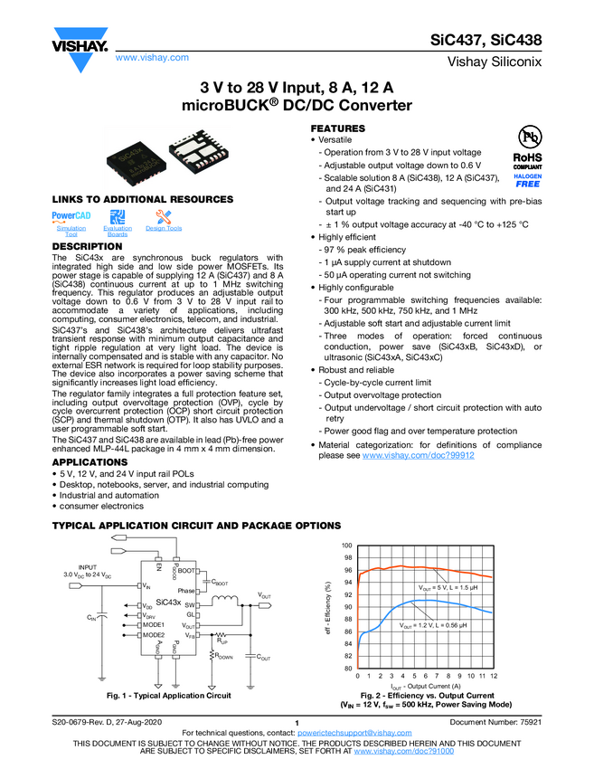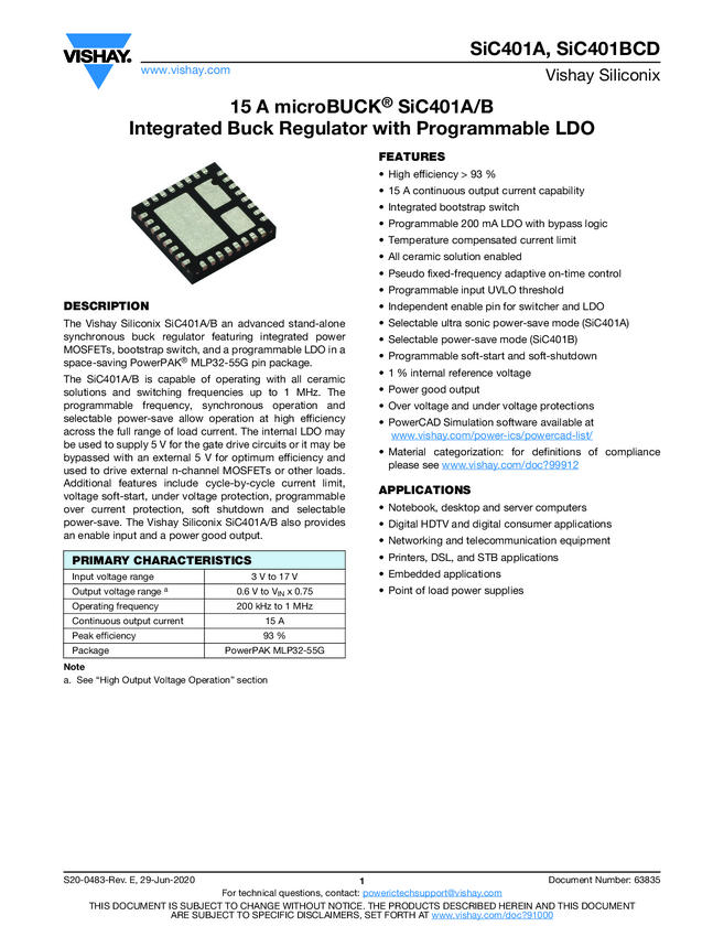 15 A microBUCK® SiC401A/B Integrated Buck Regulator with Programmable LDO