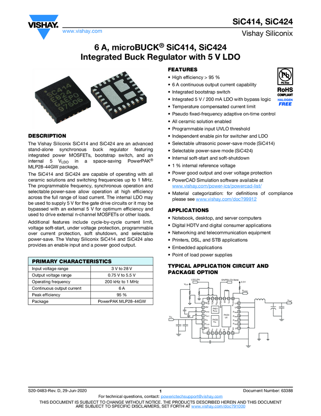 6 A microBUCK® SiC403A/B Integrated Buck Regulator with Programmable LDO