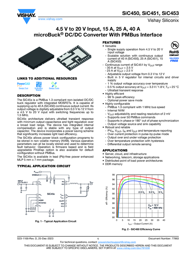 4.5 V to 20 V Input, 15 A, 25 A, 40 A microBuck® DC/DC Converter With PMBus Interface