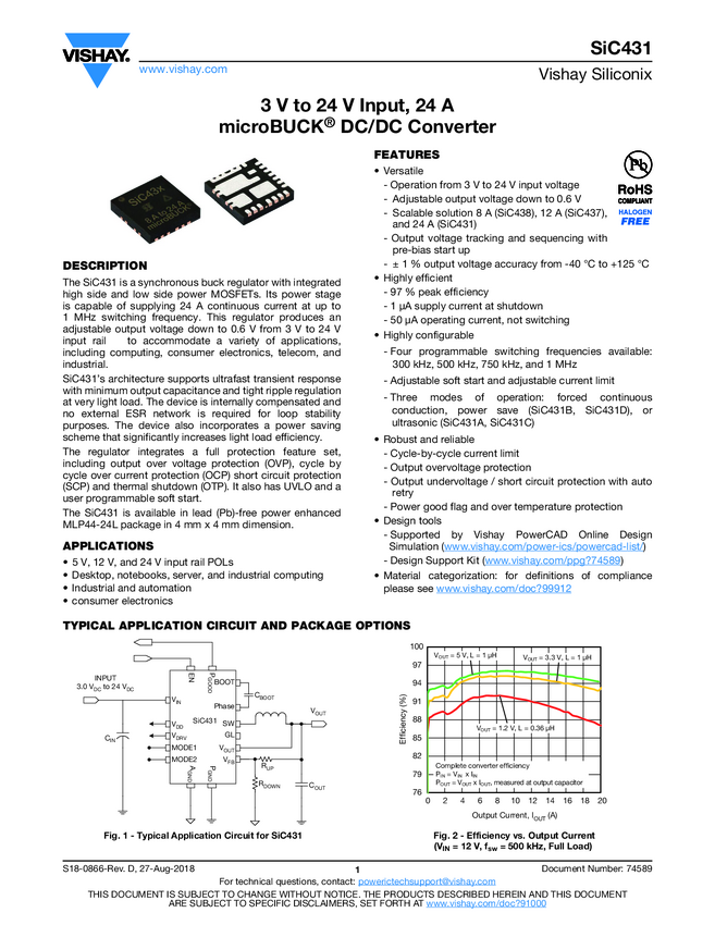 3 V to 24 V Input, 24 A microBUCK® DC/DC Converter