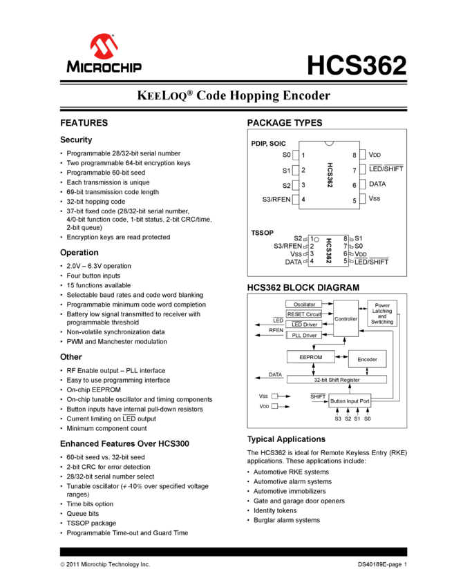 HCS362 Datasheet (05/31/2011)