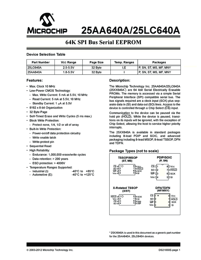 25AA640A/25LC640A 64K SPI Serial EEPROM Data Sheet (02/13/2012)