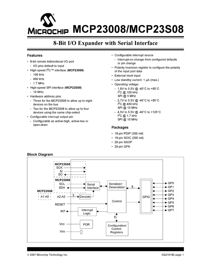 MCP23008/MCP23S08 Data Sheet (08/24/2007)