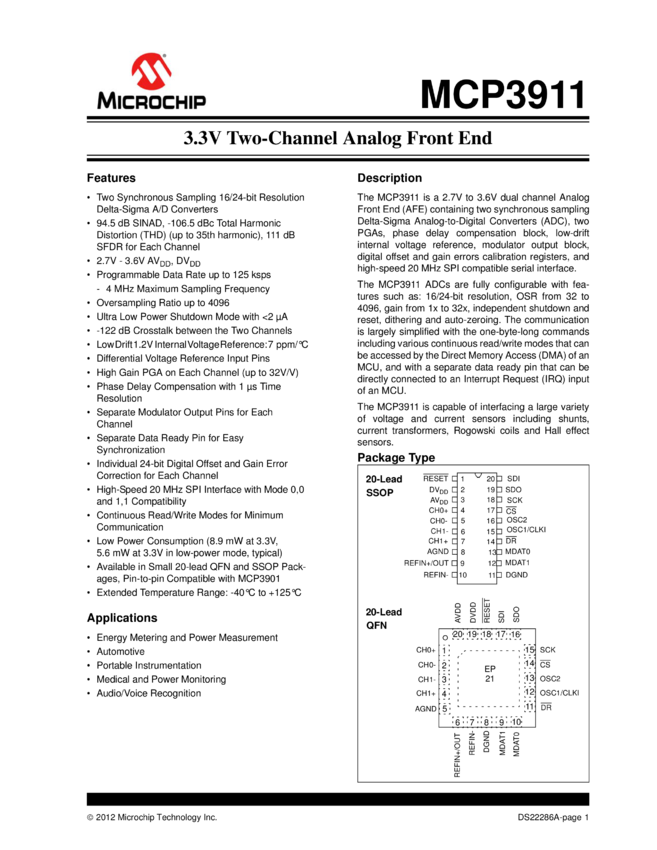 MCP3911 Data Sheet (03/28/2012)