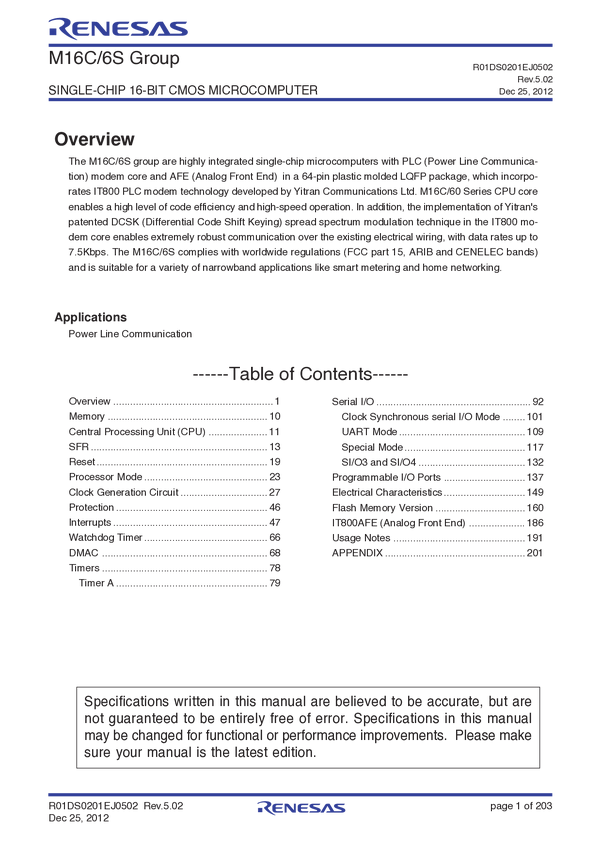 Highly Integrated Single-chip 16-bit Microcomputers with PLC Modem Core
