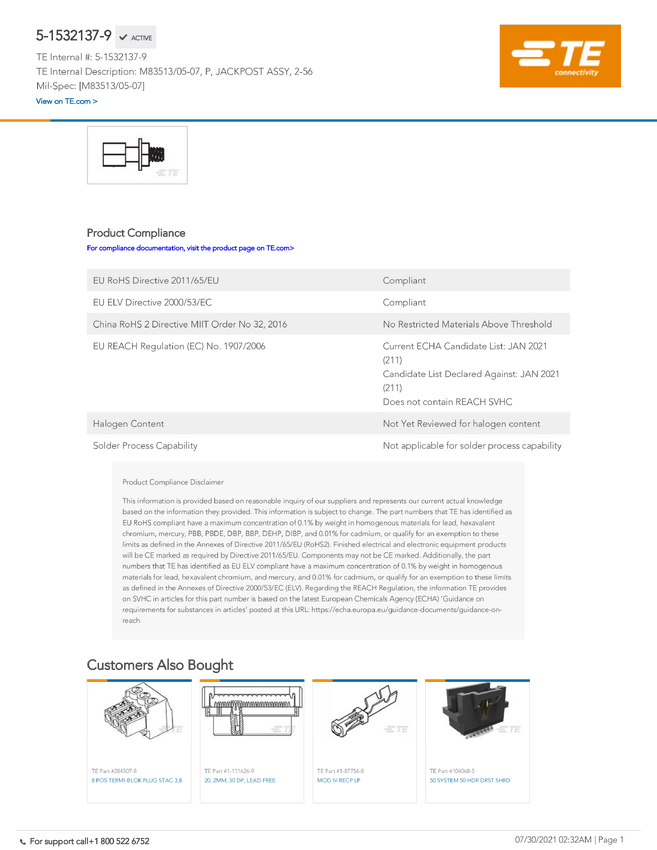 Microdot Products TE AMP Microdot Products 5-1532137-7 TE Connectivity Zawartość: 1 szt.