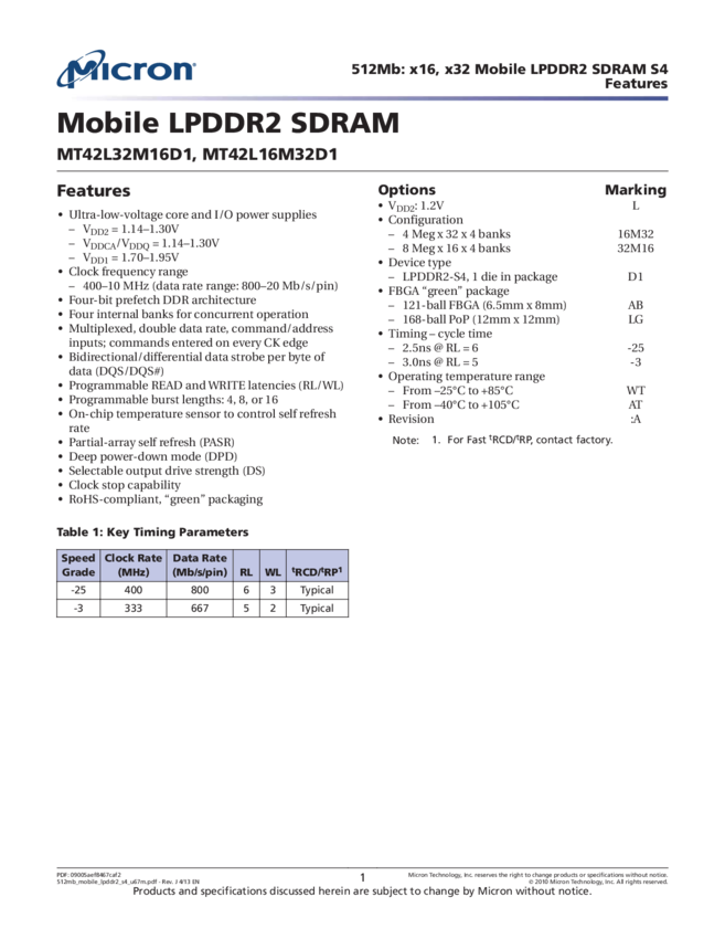 MT42L32M16D1AB-3 WT:A