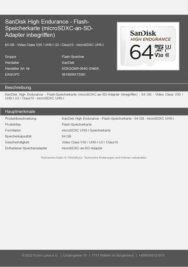 Karta pamięci SanDisk® High Endurance microSD™ 64 GB + adapter