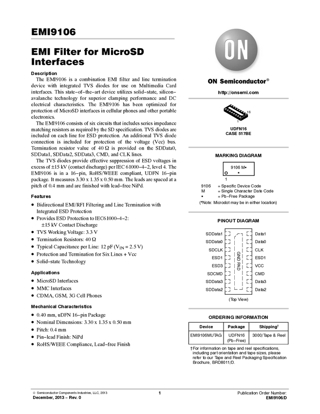 EMI Filter with ESD Protection for MicroSD Card Applications