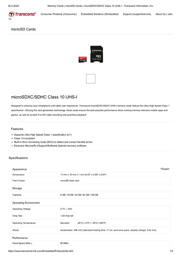 Karta microSDHC Transcend Ultimate (600x) 16 GB Class 10 UHS-I
