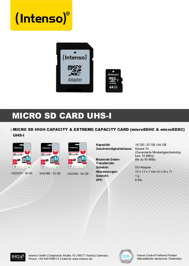 Intenso 16GB microSDHC Performance microSD 16 GB Class 10 UHS-I wodoszczelny