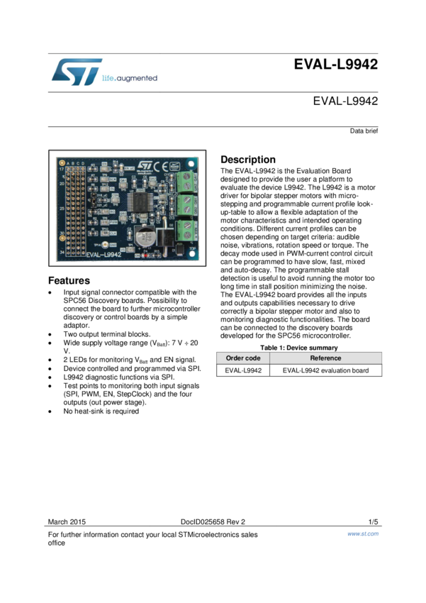 Fully integrated microstepping motor controller with motion engine and SPI evaluation board